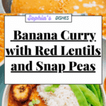 To serve, spoon fluffy rice into bowls, ladle over the spicy lentil curry, then top with fresh sugar snap peas and the golden caramelized banana slices. This final combination highlights a beautiful balance of colors, textures, and flavors that make this recipe utterly memorable.